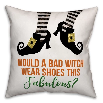 The Bad Witch Fabulous Shoes 16×16 Indoor / Outdoor Pillow from our Halloween Collection features striped stockings and buckled shoes with the phrase: Would a bad witch wear shoes this fabulous? This non-traditional design will add a humous touch to your Halloween decorations this year. This indoor/outdoor pillow helps you inject style into your home this holiday season. Digitally printed on demand, this exclusive design displays vibrant colors. The result is a beautiful design you’re sure to love. Our beautiful indoor/outdoor pillows are designed and printed in the USA. Double-sided Print16x16Cover Material: Spun Polyester Fill Material: Polyester/PolyfillRemovable Cover: No No UV protection Stain, mildew, and water resistant Washing Method: Spot clean and dry clean only