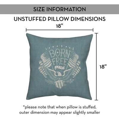 Add a red, white and blue touch to your front porch and home this Patriotic season with this indoor/outdoor pillow. Designed and printed in the United States on quality materials, this is an item you’re sure to love. Our beautiful indoor/outdoor pillows are designed and printed in the USA.Double-sided Print18x18Cover Material: Spun PolyesterFill Material: Polyester/PolyfillRemovable Cover: NoNo UV protectionStain, mildew, and water resistantWashing Method: Spot clean and dry clean only