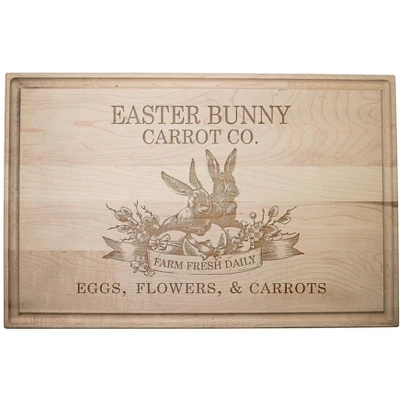 Add a Spring touch to your kitchen this Easter season with this festive serving and cutting board. Designed and engraved in the United States on quality materials, this is an item you’re sure to love. Prepare your food on our premium maple wood cutting boards with an engraved design. 11 x 17 x 1Engraved design on premium maple woodNatural tones and grains of wood may vary from item to itemFood safeWith inbuilt grooves, this board will help to confine the spills of your food items in its channelsDesigned and engraved in the USACare instructions: Clean with a sponge and hot soapy water. Dry thoroughly. Condition board with food-safe mineral oil monthly to prevent the wood from drying out.