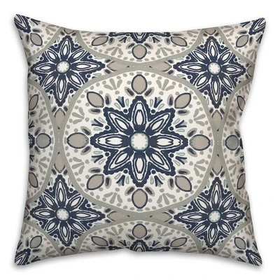 Creative Products Faded Blue Gray Medallions 18×18 Indoor / Outdoor Pillow
