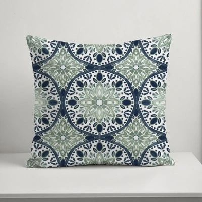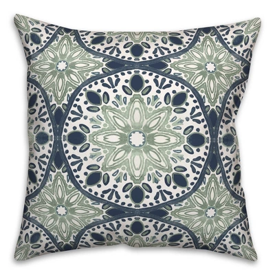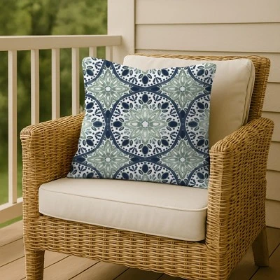 Creative Products Faded Blue Green Medallions 18×18 Indoor / Outdoor Pillow