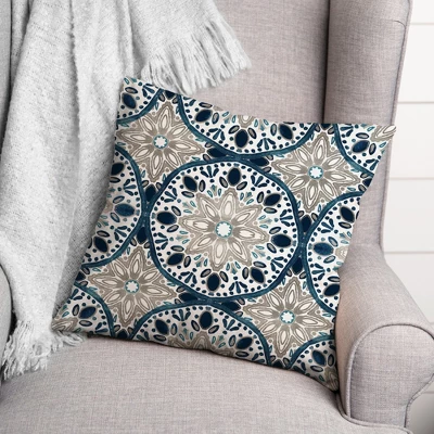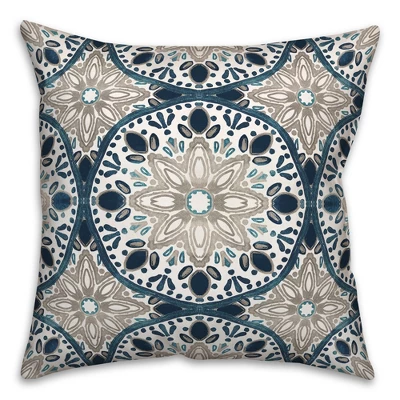 Creative Products Faded Gray Blue Medallions 18×18 Indoor / Outdoor Pillow