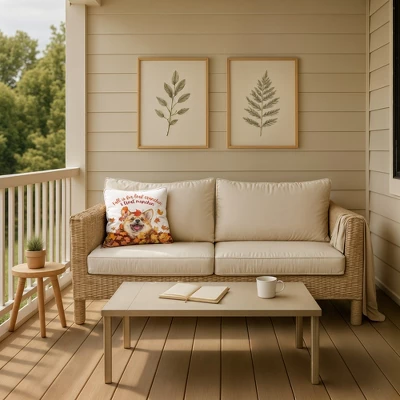 Add a harvest touch to your home this Fall season with this festive throw pillow. Designed and printed in the United States on quality materials, this is an item you’re sure to love. Our beautiful indoor/outdoor pillows are designed and printed in the USA.Double-sided Print18x18Cover Material: Spun PolyesterFill Material: Polyester/PolyfillRemovable Cover: NoNo UV protectionStain, mildew, and water resistantWashing Method: Spot clean and dry clean only