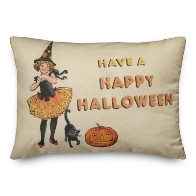 This pillow will add a retro touch of Halloween to your home. Designed and printed in the United States to display vibrant colors, this is a print you’re sure to love. Our beautiful outdoor pillows are designed and printed in the USA.Double-sided Print14x2Cover Material: Spun PolyesterFill Material: Polyester/PolyfillRemovable Cover: NoWater resistant