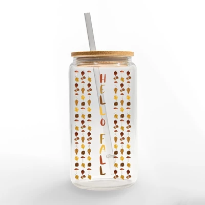 Add a harvest touch to your drinkware this Fall season with this festive glass can cup. Designed and printed in the United States on quality materials, this is an item you’re sure to love. Enjoy your favorite beverage in this glass can cup with a bamboo top and glass straw designed in the USA.16-ounce capacityDimensions: 3x3x5.8Reuseable glass can cup with a bamboo top and a trendy glass strawGreat for daily use of iced beveragesHand wash only