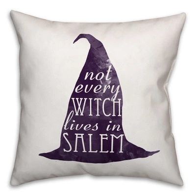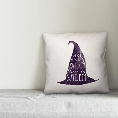 The Not Every Witch Lives in Salem 16×16 Indoor / Outdoor Pillow from our Halloween Collection features a witchy tongue-in-cheek sentiment on a purple pointy witch hat. The design of dramatic purple watercolor hat provides a trendy and non-traditional take on Halloween decor. This indoor/outdoor pillow helps you take your decor to the next level in your house this fall. Digitally printed on demand, this exclusive design displays vibrant colors. The result is a beautiful design you’re sure to love. Our beautiful indoor/outdoor pillows are designed and printed in the USA. Double-sided Print16x16Cover Material: Spun Polyester Fill Material: Polyester/PolyfillRemovable Cover: No No UV protection Stain, mildew, and water resistant Washing Method: Spot clean and dry clean only
