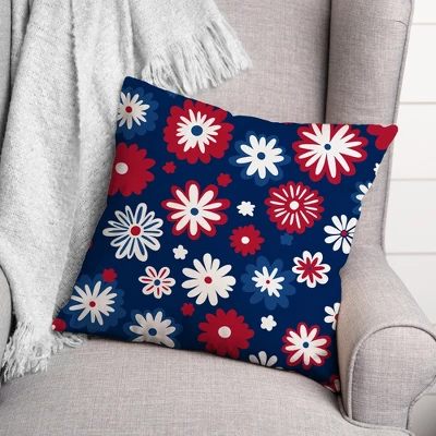 Add a red, white and blue touch to your front porch and home this Patriotic season with this indoor/outdoor pillow. Designed and printed in the United States on quality materials, this is an item you’re sure to love. Our beautiful indoor/outdoor pillows are designed and printed in the USA.Double-sided Print18x18Cover Material: Spun PolyesterFill Material: Polyester/PolyfillRemovable Cover: NoNo UV protectionStain, mildew, and water resistantWashing Method: Spot clean and dry clean only