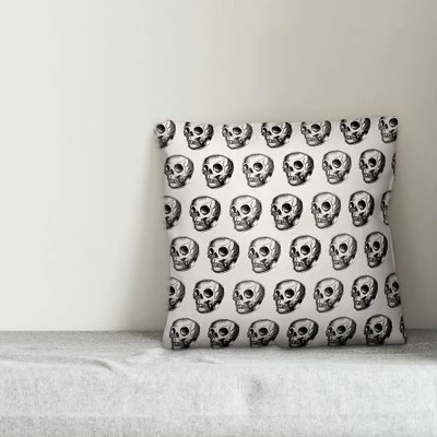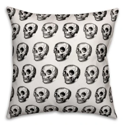 The Skull Pattern 16×16 Indoor / Outdoor Pillow from our Halloween Collection features rows of skeleton skulls that make for a frightening pattern. This indoor/outdoor pillow helps you create a frightening atmosphere in your interior decor this Halloween. Digitally printed on demand, this exclusive design displays vibrant colors. The result is a beautiful design you’re sure to love. Our beautiful indoor/outdoor pillows are designed and printed in the USA. Double-sided Print16x16Cover Material: Spun Polyester Fill Material: Polyester/PolyfillRemovable Cover: No No UV protection Stain, mildew, and water resistant Washing Method: Spot clean and dry clean only
