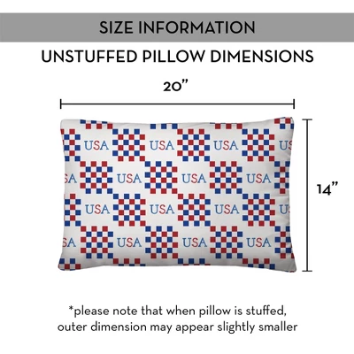 Add a red, white and blue touch to your front porch and home this Patriotic season with this indoor/outdoor pillow. Designed and printed in the United States on quality materials, this is an item you’re sure to love. Our beautiful outdoor pillows are designed and printed in the USA.Double-sided Print14x2Cover Material: Spun PolyesterFill Material: Polyester/PolyfillRemovable Cover: NoWater resistant