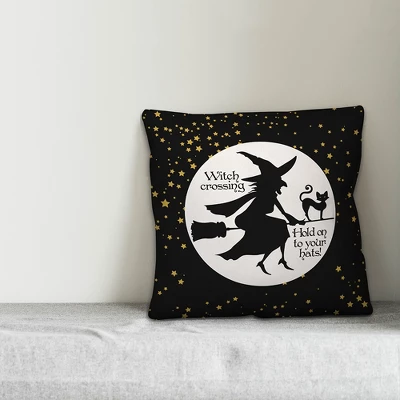Add style and flair to your space with this Halloween themed accent. Designed and printed in the United States, this autumn accent is sure to bring the joy of the season to your room. Our beautiful indoor/outdoor pillows are designed and printed in the USA. Double-sided Print16x16Cover Material: Spun Polyester Fill Material: Polyester/PolyfillRemovable Cover: No No UV protection Stain, mildew, and water resistant Washing Method: Spot clean and dry clean only